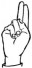 На ћирилици написано ПЕРО ГАЈОВИЋ састоји се из 11 слова [?]. Исписано ћириличном једноручном азбуком за глувонеме: